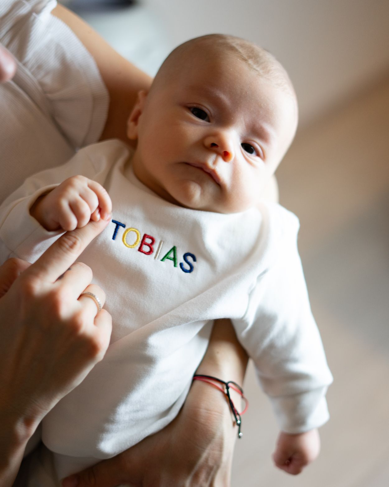The material that was used to make this set is not only natural and hypoallergenic, but also environmentally friendly. Your baby will enjoy the softness and comfort of every touch. Personalization makes this set not only a unique gift for newborns, but also an unforgettable memory of those perfect first days. With its design and irresistible quality, our personalized set becomes the center of attention at every celebration, family gathering, or just on a walk with the stroller. Announce your little treasure's name to the world with pride and joy. NEWLY IMPROVED cut - tracksuits will now last longer. Cuts are enlarged. We recommend taking sizes according to the baby's age.
